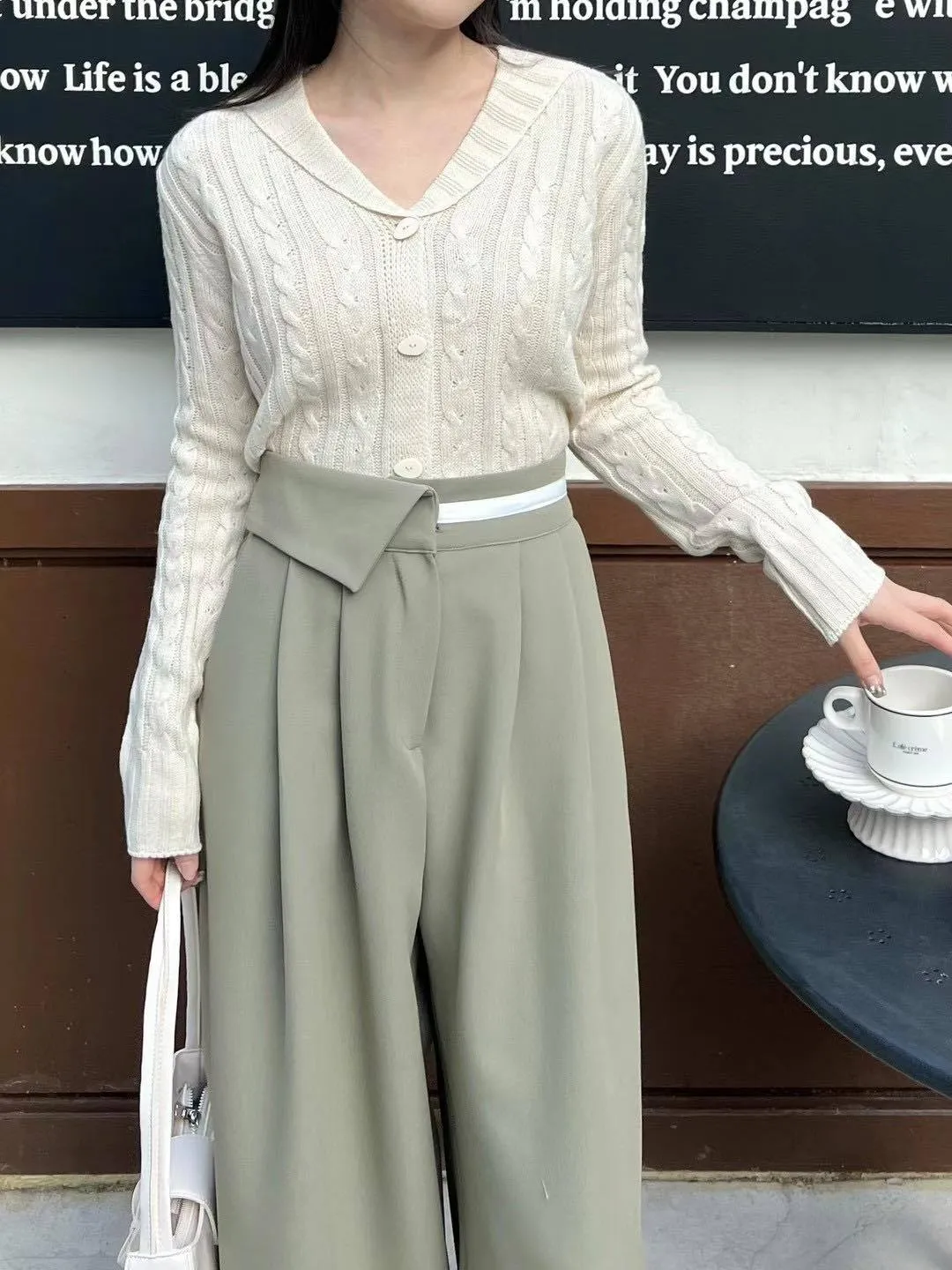 高腰反折後鬆緊落地寬褲