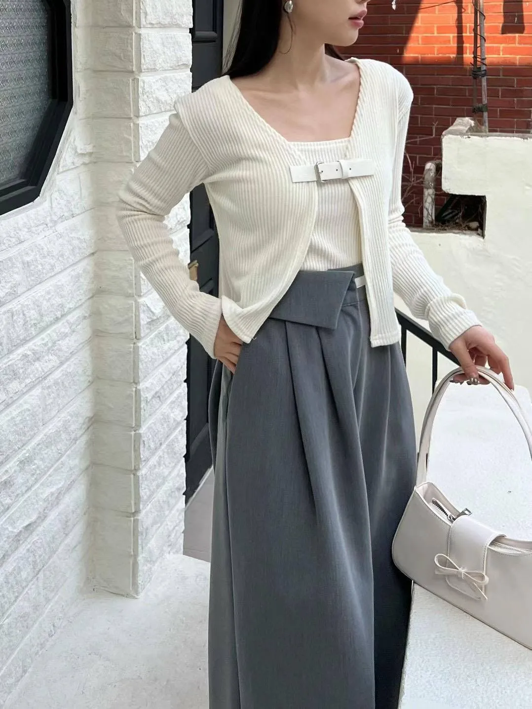 腰頭單側做反摺的設計