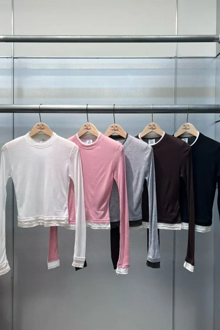 這是一款合身的假兩件式打底衣