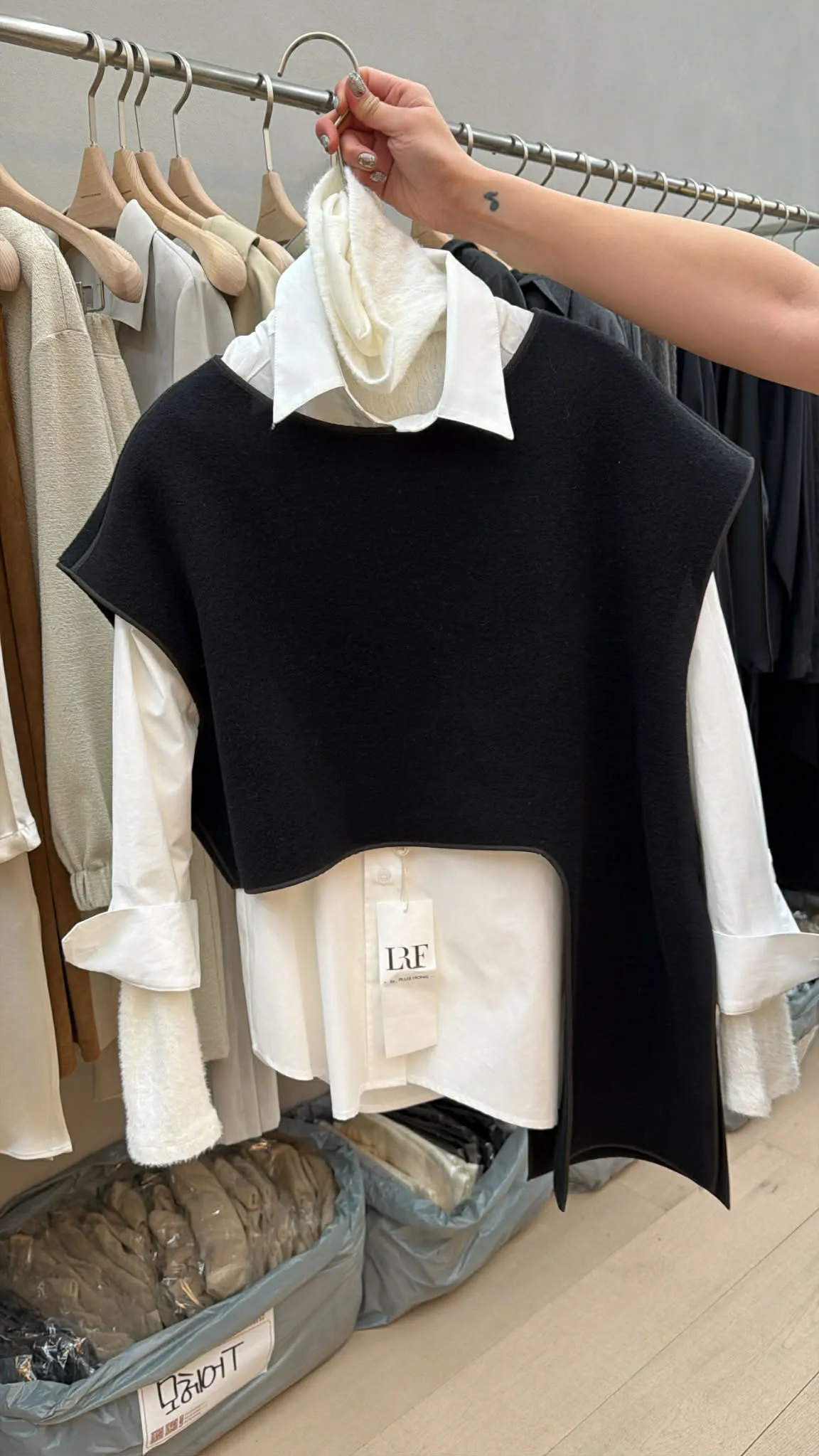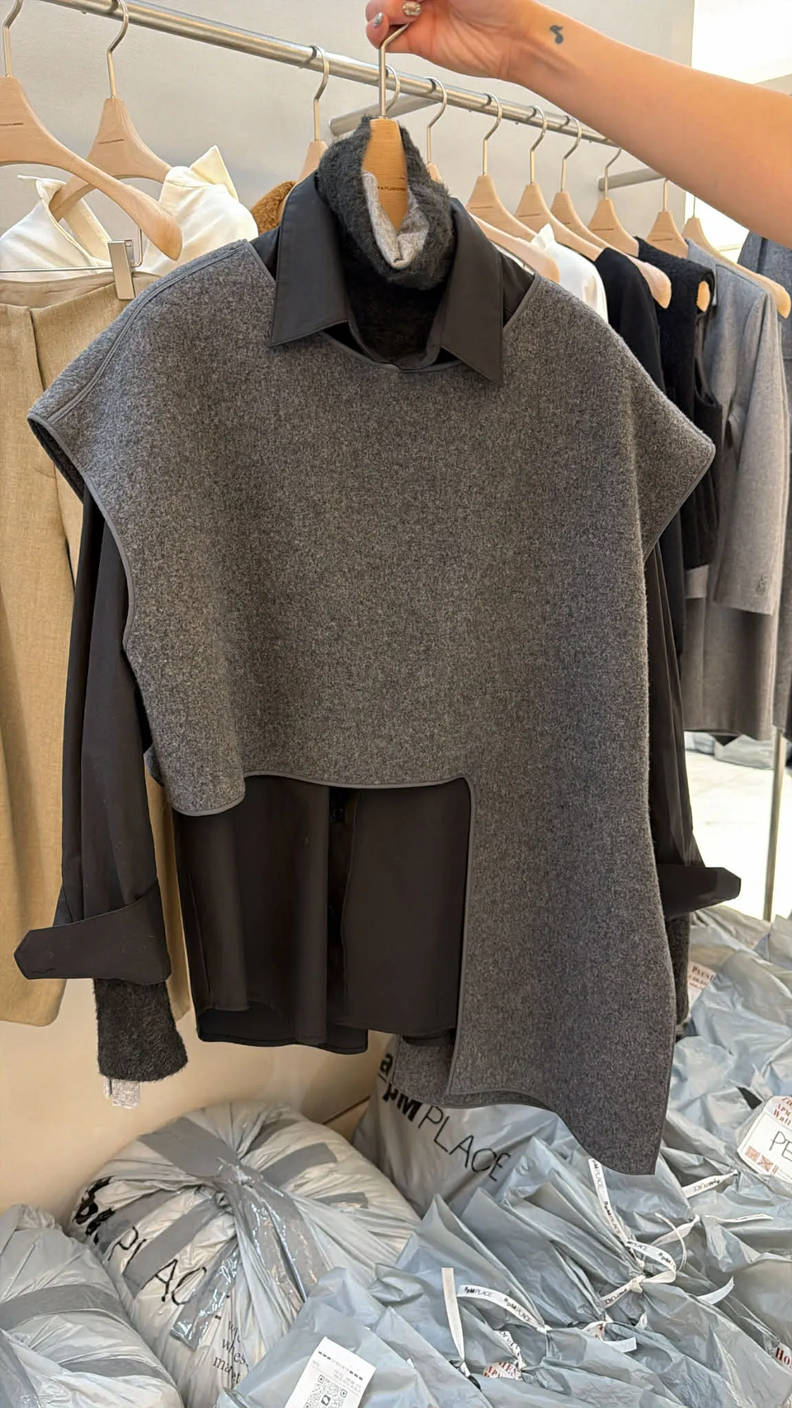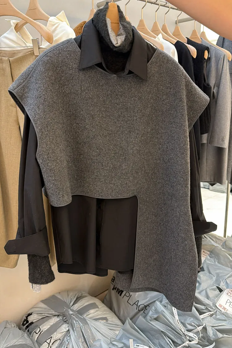 不規則的剪裁讓這款80%羊絨背心整個很有時尚感